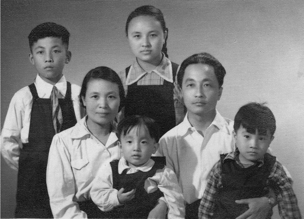 Zhang Langlang (links) und Zhang Liaoliao (unten Mitte) 1953 mit Eltern und Geschwistern |